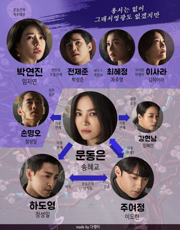 초반에는 피해자 문동은과 가해자들의 구도가 명확해 보이지만, 후반부로 갈수록 새로운 인물의 등장, 가해자 간의 균열, 예상치 못한 배신 등이 드러나며 이야기는 새로운 국면으로 전개됩니다.